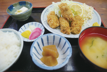 | さば味噌煮定食 750円 お刺身定食……1,050円〜 ミックスフライ定食(海老、イカ、アジ) …… 850円 桜海老かき揚げ定食 …………… 750円 天ざるそば ……1,050円 しょうが焼き定食 … 780円 カキフライ定食…… 880円 タンメン…………… 550円 |